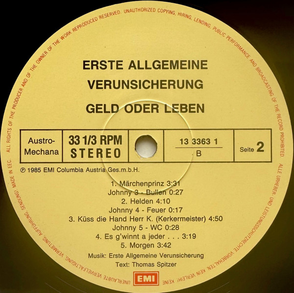 Vinyl / Erste Allgemeine Verunsicherung* - Geld Oder Leben!