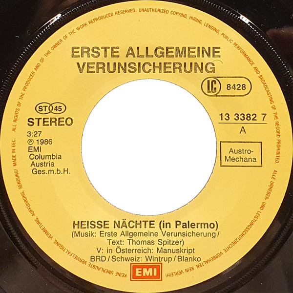 Vinyl / Erste Allgemeine Verunsicherung* - Heisse Nächte In Palermo