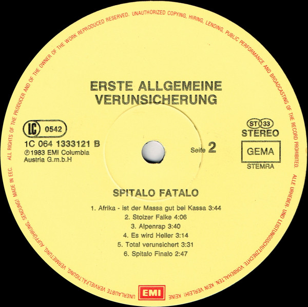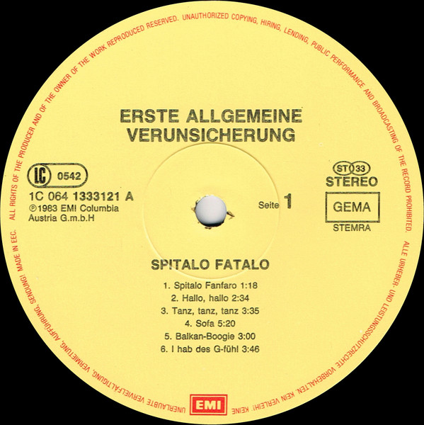 Vinyl / Erste Allgemeine Verunsicherung* - Spitalo Fatalo