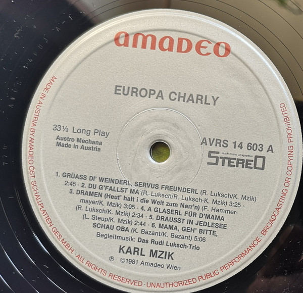 Vinyl / Europa Charly - I Bin's Da Karl Dei' Bua