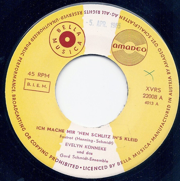 Vinyl / Evelyn Künneke - Ich Mache Mir 'Nen Schlitz In's Kleid / Die Männer Sind So Knapp