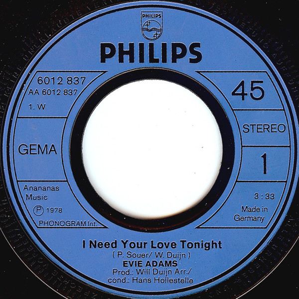 Vinyl / Evie Adams - I Need Your Love Tonight
