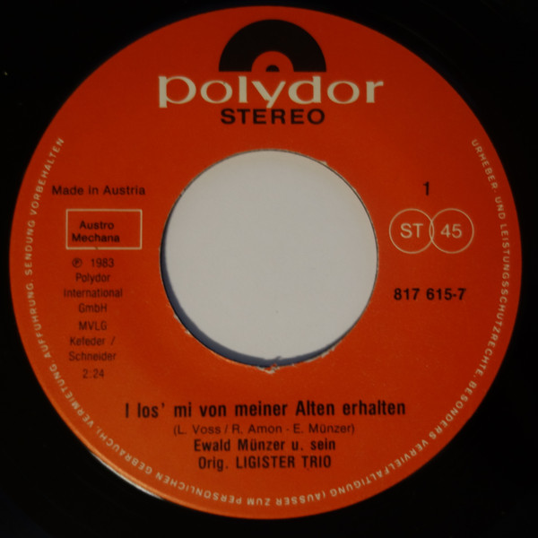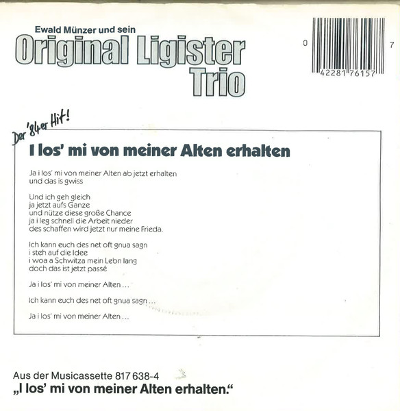 Vinyl / Ewald Münzer Und Sein Original Ligister Trio - I Los' Mi von Meiner Alten Erhalten
