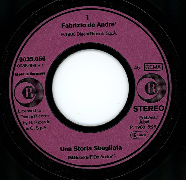 Vinyl / Fabrizio De André - Una Storia Sbagliata