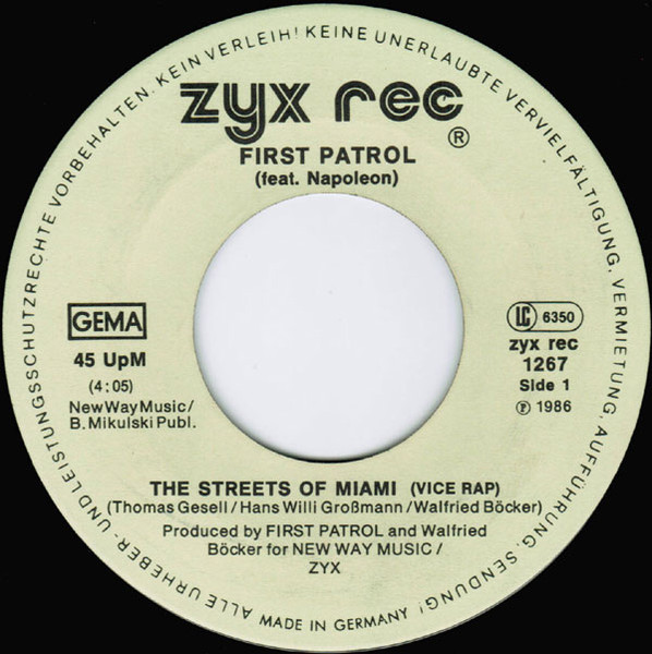 Vinyl / First Patrol Featuring Napoleon* - The Streets Of Miami (Vice Rap)