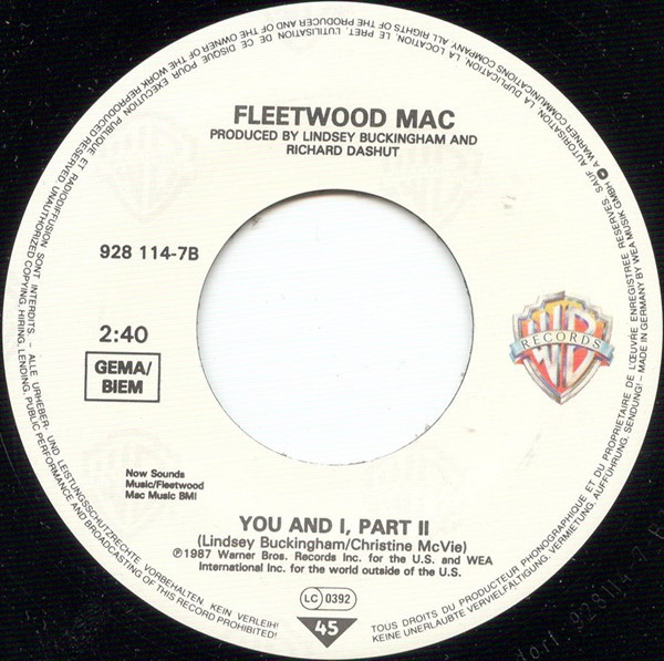 Label: Warner Bros. Records - Cat#: 928 114-7