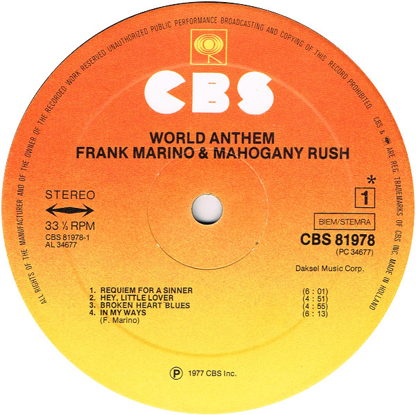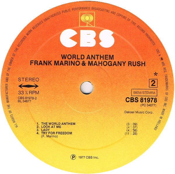 Vinyl / Frank Marino & Mahogany Rush - World Anthem