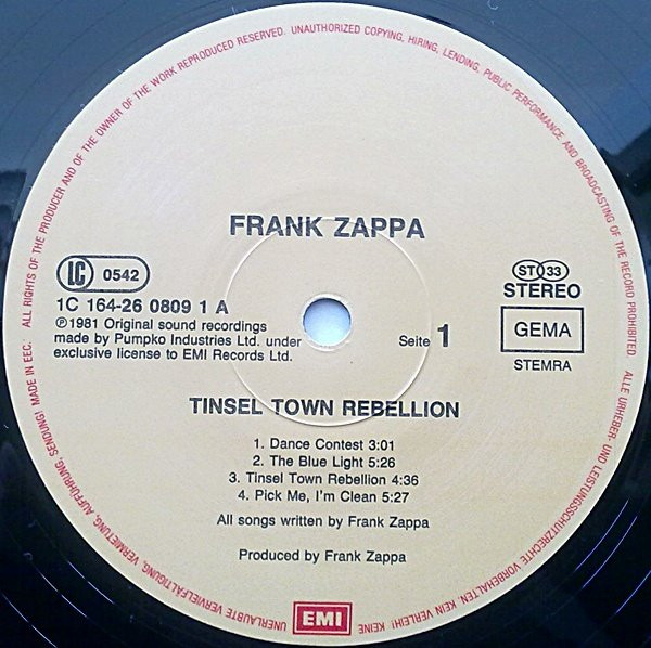 Vinyl / Frank Zappa - Tinseltown Rebellion
