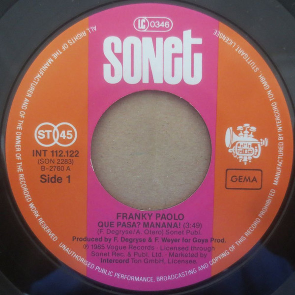 Vinyl / Franky Paolo - Que Pasa? Manana!