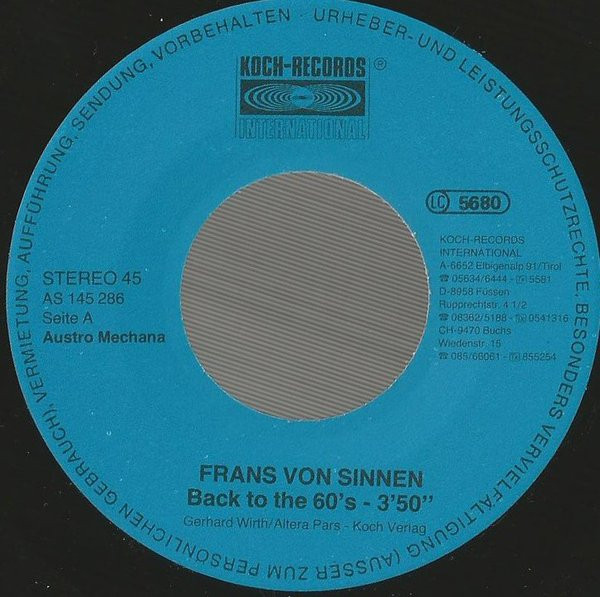 Vinyl / Frans Von Sinnen - Back To The 60's