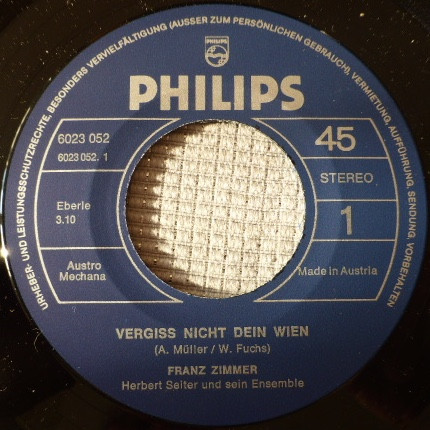 Vinyl / Franz Zimmer - Vergiß nicht dein Wien