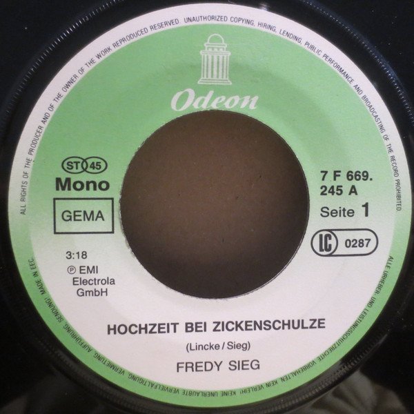 Vinyl / Fredy Sieg - Hochzeit Bei Zickenschulze