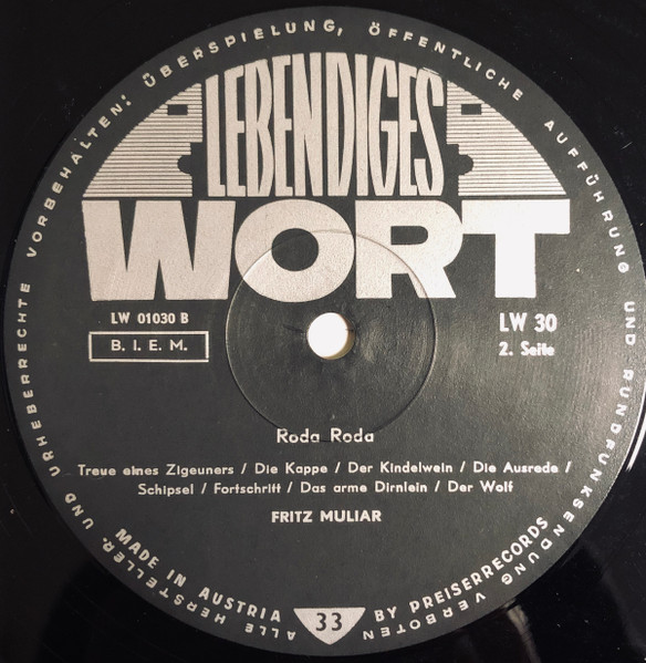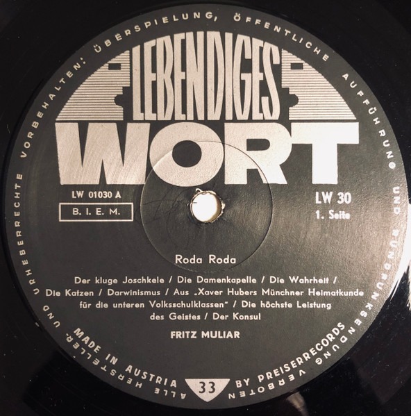Vinyl / Fritz Muliar - Die Große Roda Roda Platte
