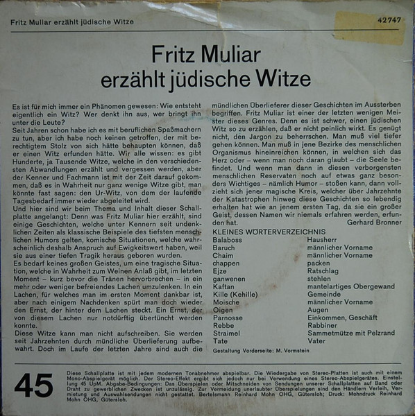 Vinyl / Fritz Muliar - Fritz Muliar Erzählt Jüdische Witze