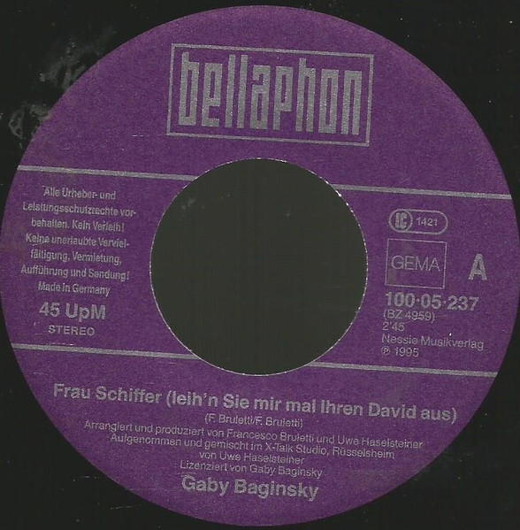 Vinyl / Gaby Baginsky - Frau Schiffer (Leih'n Sie Mir Mal Ihren David Aus)