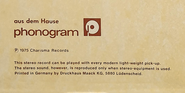 Label: Charisma - Cat#: 6369 974