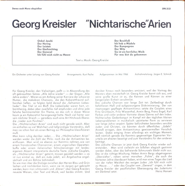 Vinyl / Georg Kreisler - ‚Nichtarische‘ Arien