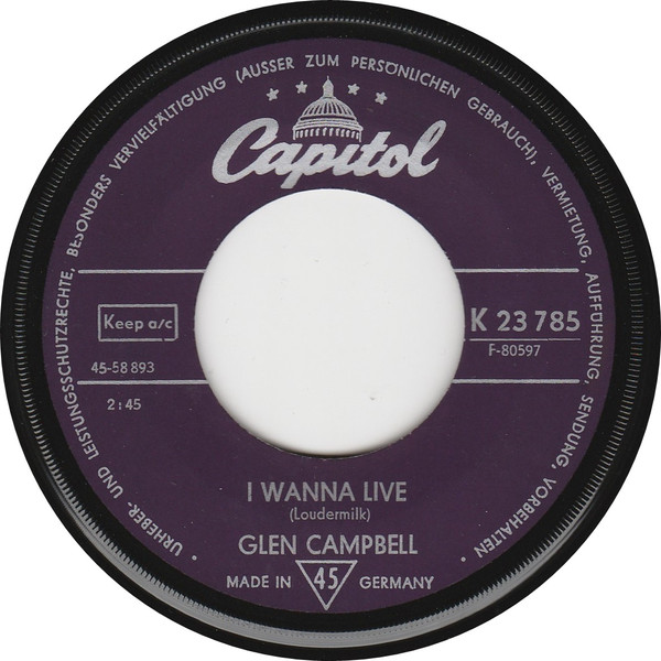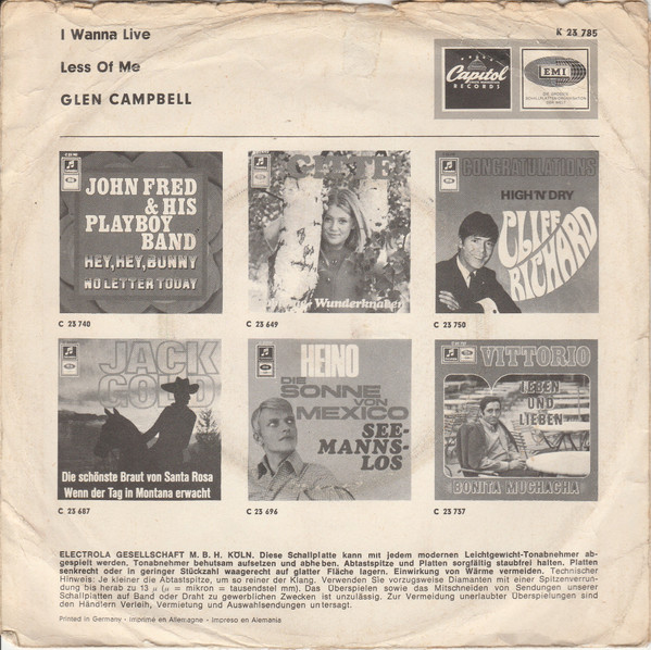Vinyl / Glen Campbell - I Wanna Live / Less Of Me