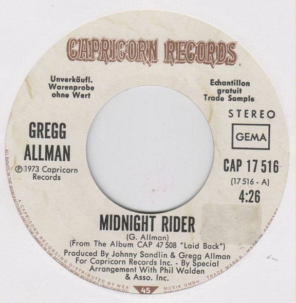 Label: Capricorn Records - Cat#: CAP 17 516
