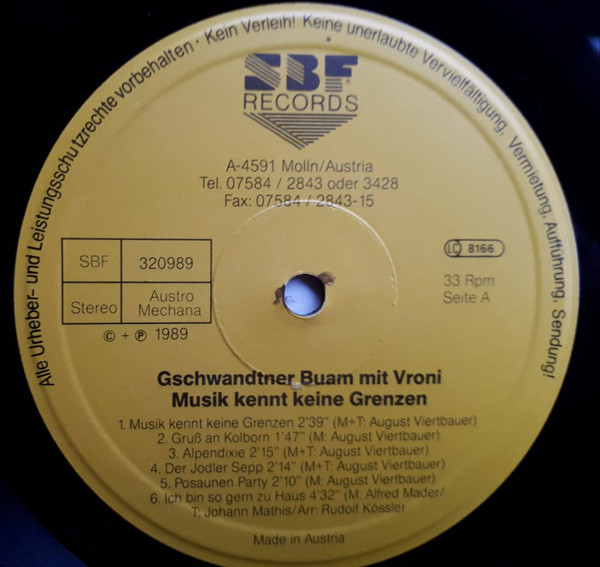 Vinyl / Gschwandtner Buam Mit Vroni (2) - Musik Kennt Keine Grenzen