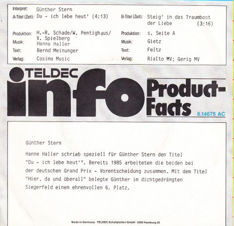 Vinyl / Günther Stern - Du - Ich Lebe Heut'