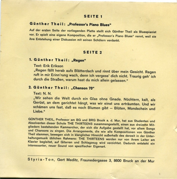 Vinyl / Günther Theil, The Thirteens (2) - Blues Song Chanson