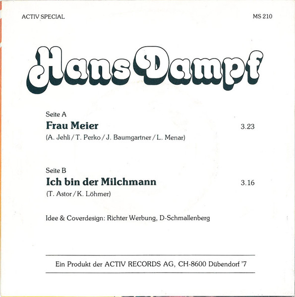 Vinyl / Hans Dampf (5) - Frau Meier / Ich Bin Der Milchmann