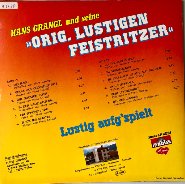 Vinyl / Hans Grangl Und Seine Orig. Lustigen Feistritzer* - Lustig Aufgespielt