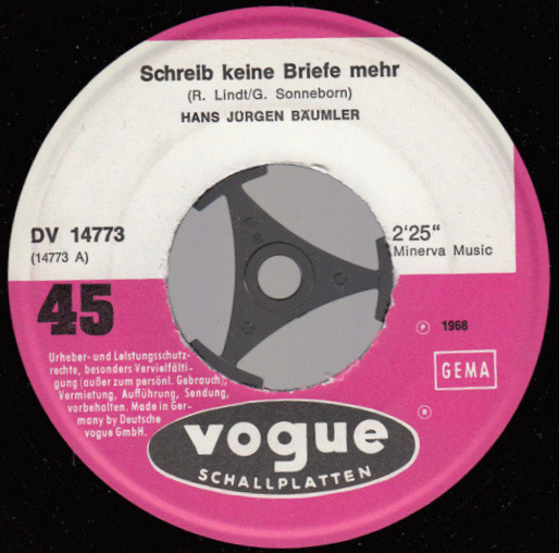 Vinyl / Hans-Jürgen Bäumler - Schreib Keine Briefe Mehr