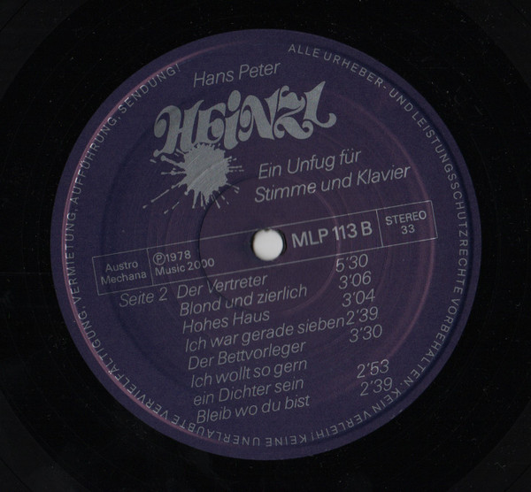 Vinyl / Hans Peter Heinzl - Ein Unfug Für Stimme Und Klavier