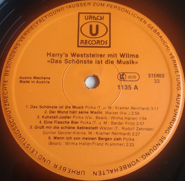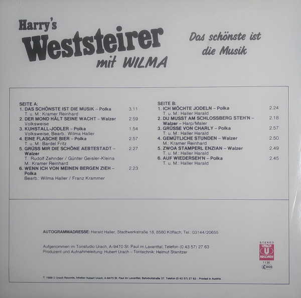 Vinyl / Harry's Weststeirer Mit Wilma* - Das Schonste Ist Die Musik