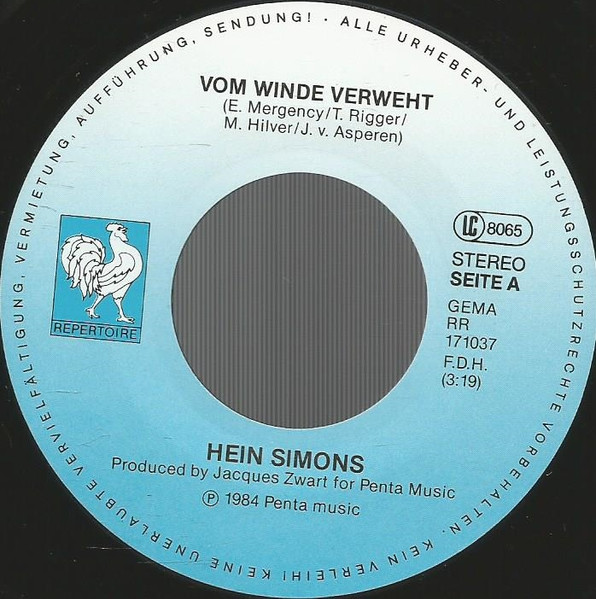 Vinyl / Hein Simons* - Vom Winde Verweht