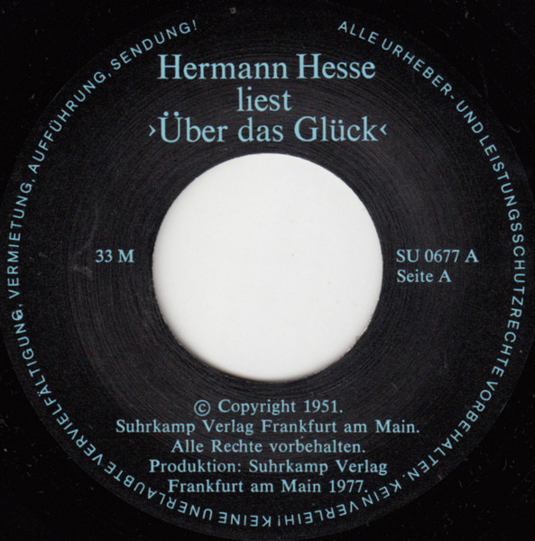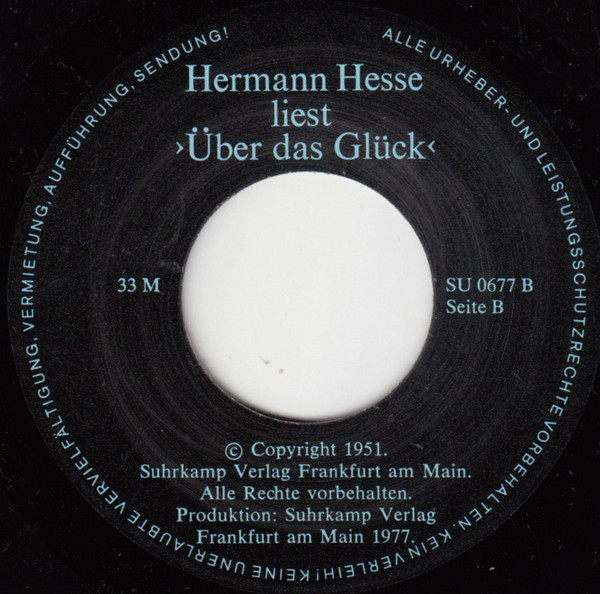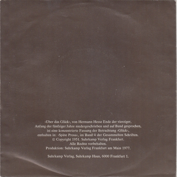 Vinyl / Hermann Hesse - Hermann Hesse Liest >Über Das Glück<