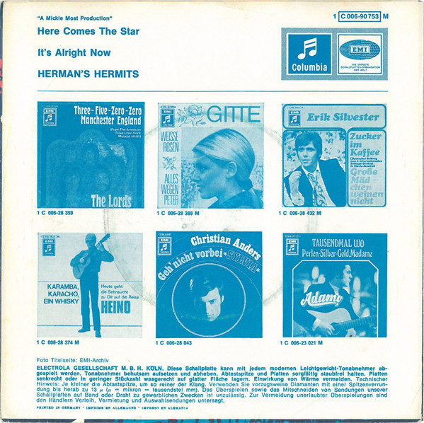 Vinyl / Herman's Hermits - Here Comes The Star / It's Alright Now
