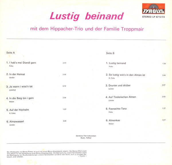 Vinyl / Hippacher Trio Und Der Fam. Troppmair* - Lustig Beinand