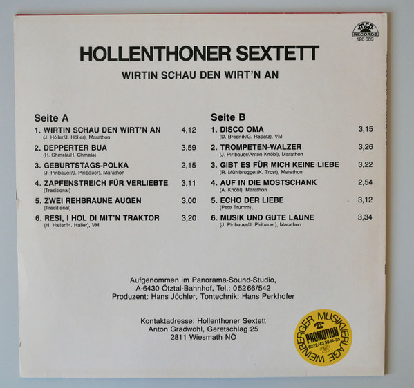 Vinyl / Hollenthoner Sextett - Wirtin Schau Den Wirt`n An