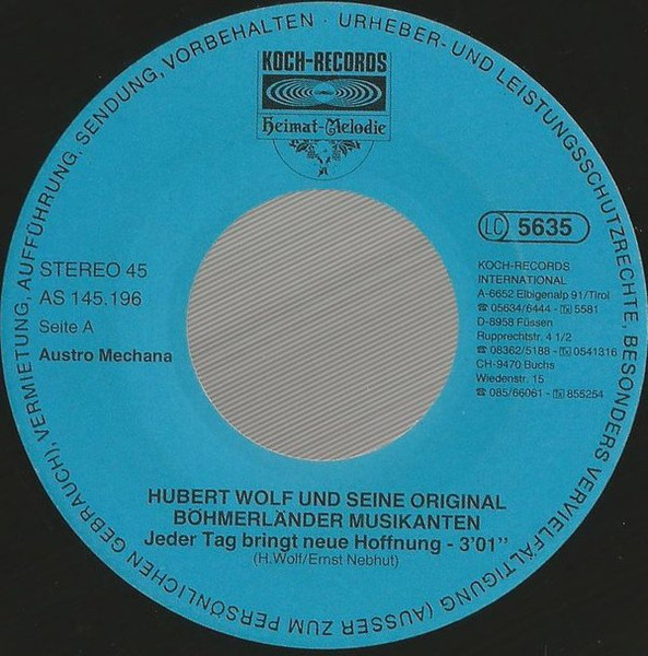Vinyl / Hubert Wolf Und Seine Original Böhmerländer - Jeder Tag Bringt Neue Hoffnung