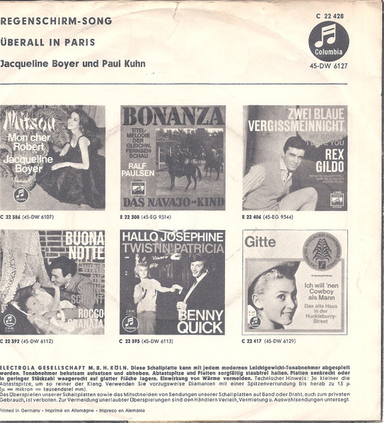 Vinyl / Jacqueline Boyer, Paul Kuhn - Regenschirm-Song
