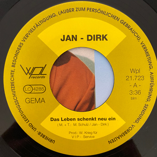 Vinyl / Jan-Dirk - Das Leben Schenkt Neu Ein / Keine Rosen (Lied Für Claudia)