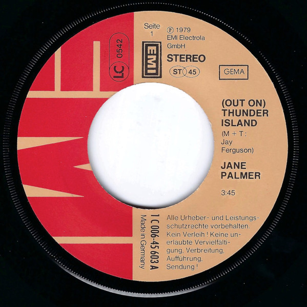 Vinyl / Jane Palmer - (Out On) Thunder Island / Till I Die