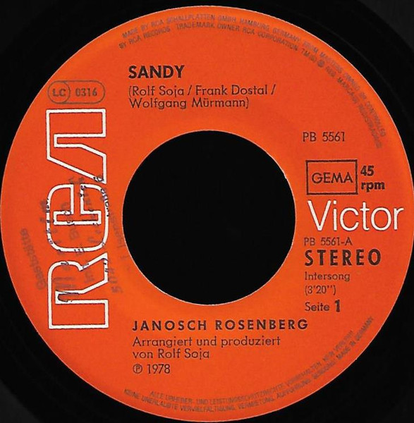 Vinyl / Janosch Rosenberg - Sandy / Meine Träume Waren Wie Sie