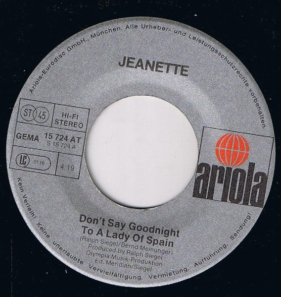 Vinyl / Jeanette (6) - Don't Say Goodnight To A Lady Of Spain