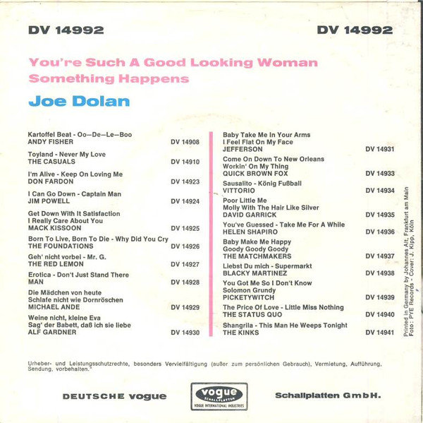 Vinyl / Joe Dolan - You're Such A Good Looking Woman