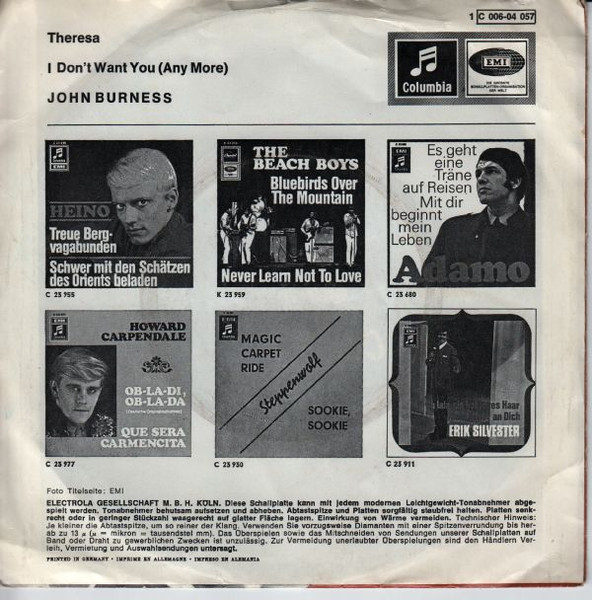 Vinyl / John Burness - Theresa / I Don't Want You (Any More)