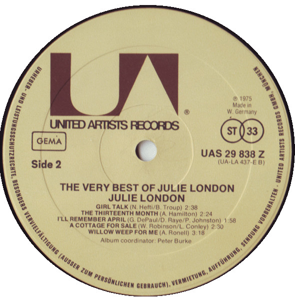 Label: United Artists Records - Cat#: UAS 29 838 Z