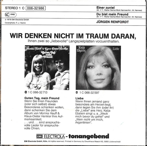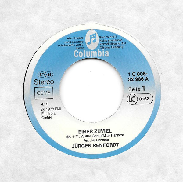 Vinyl / Jürgen Renfordt - Einer Zuviel