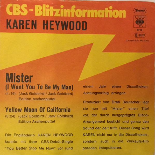 Vinyl / Karen Heywood - Mister (I Want You To Be My Man)