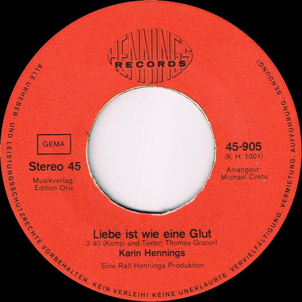 Vinyl / Karin Hennings - Liebe Ist Wie Eine Glut / Ave Maria No Moro