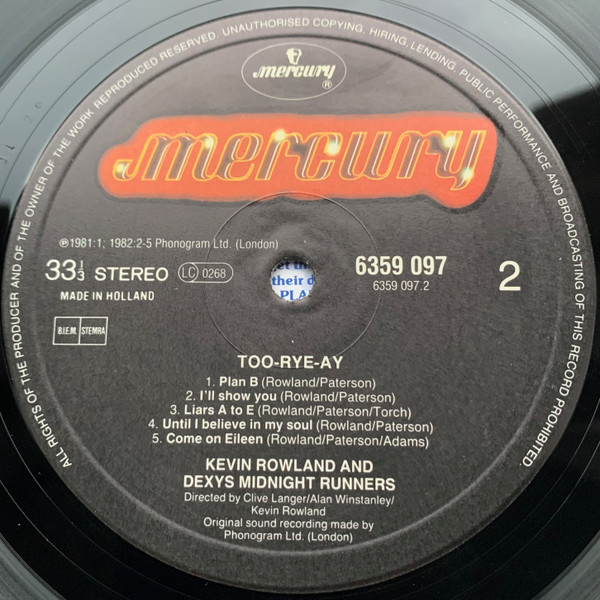 Vinyl / Kevin Rowland & Dexys Midnight Runners - Too-Rye-Ay