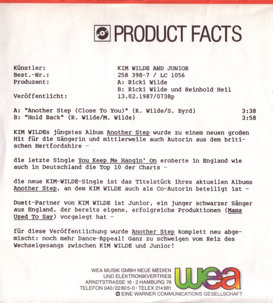 Vinyl / Kim Wilde & Junior (2) - Another Step (Closer To You)